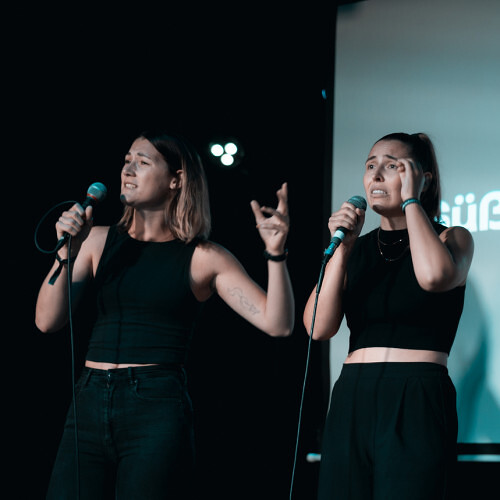 Voller Leichtigkeit und Leidenschaft gestalten Fabia und Isabella einen unvergesslichen Abend, dessen Worte zum Nachdenken anregen und noch lange nachklingen.